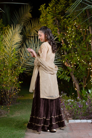 Sharara: Chocolate Brown Crush with Gold Lace