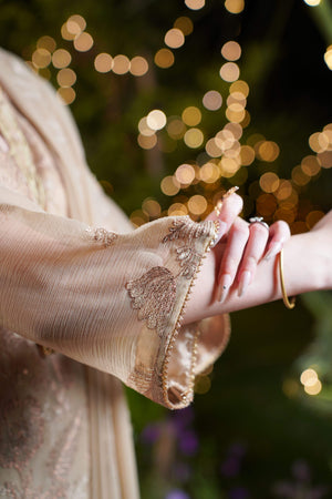 Dupatta: Beige Chiffon with Champagne Embroidered Borders