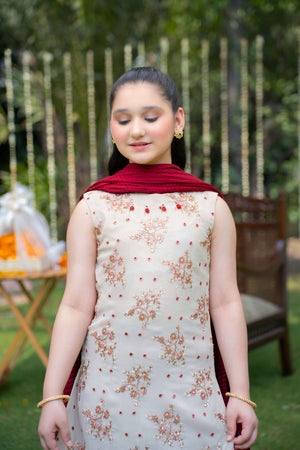 Kurti: Fawn Chiffon with Red Thread Embroidery