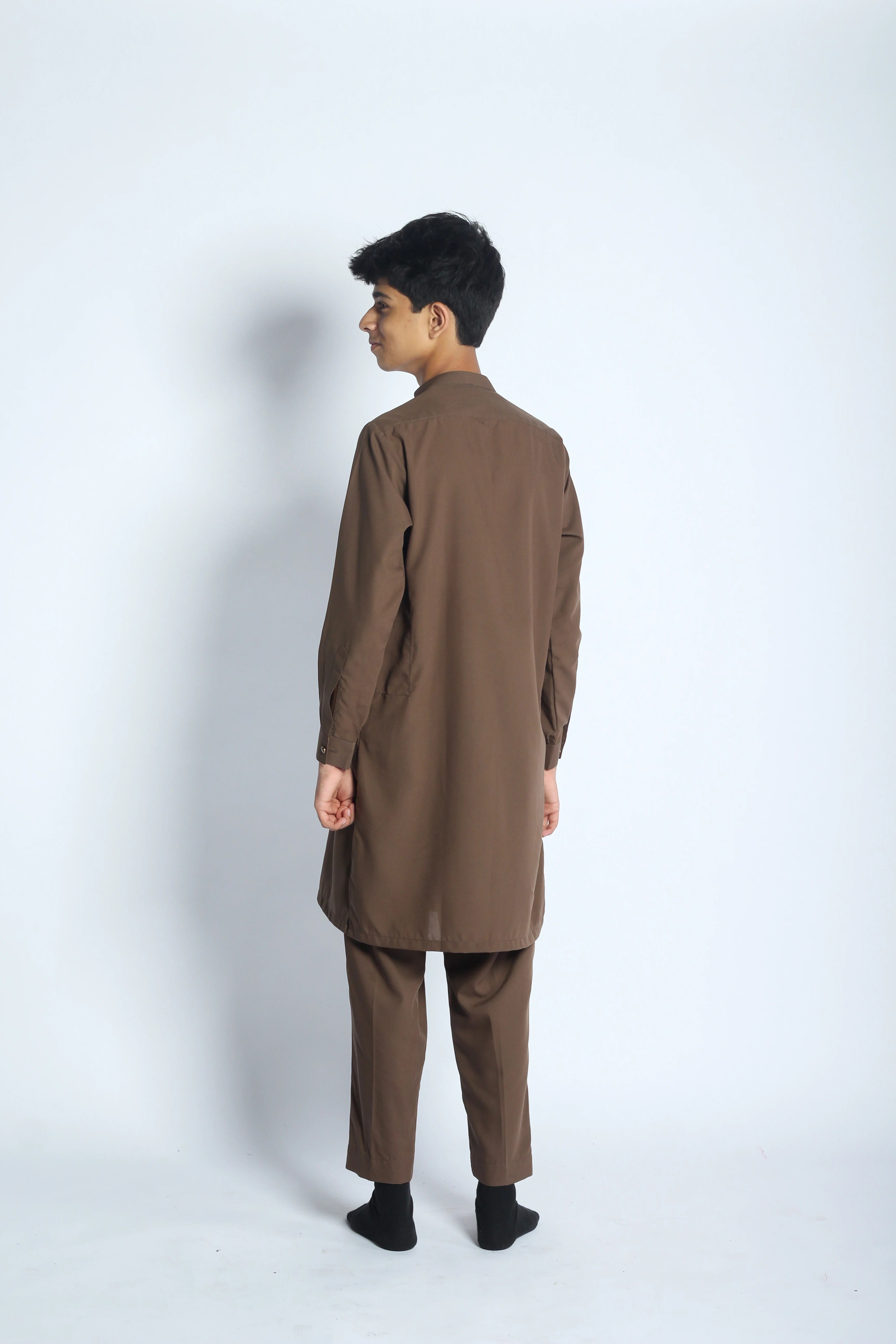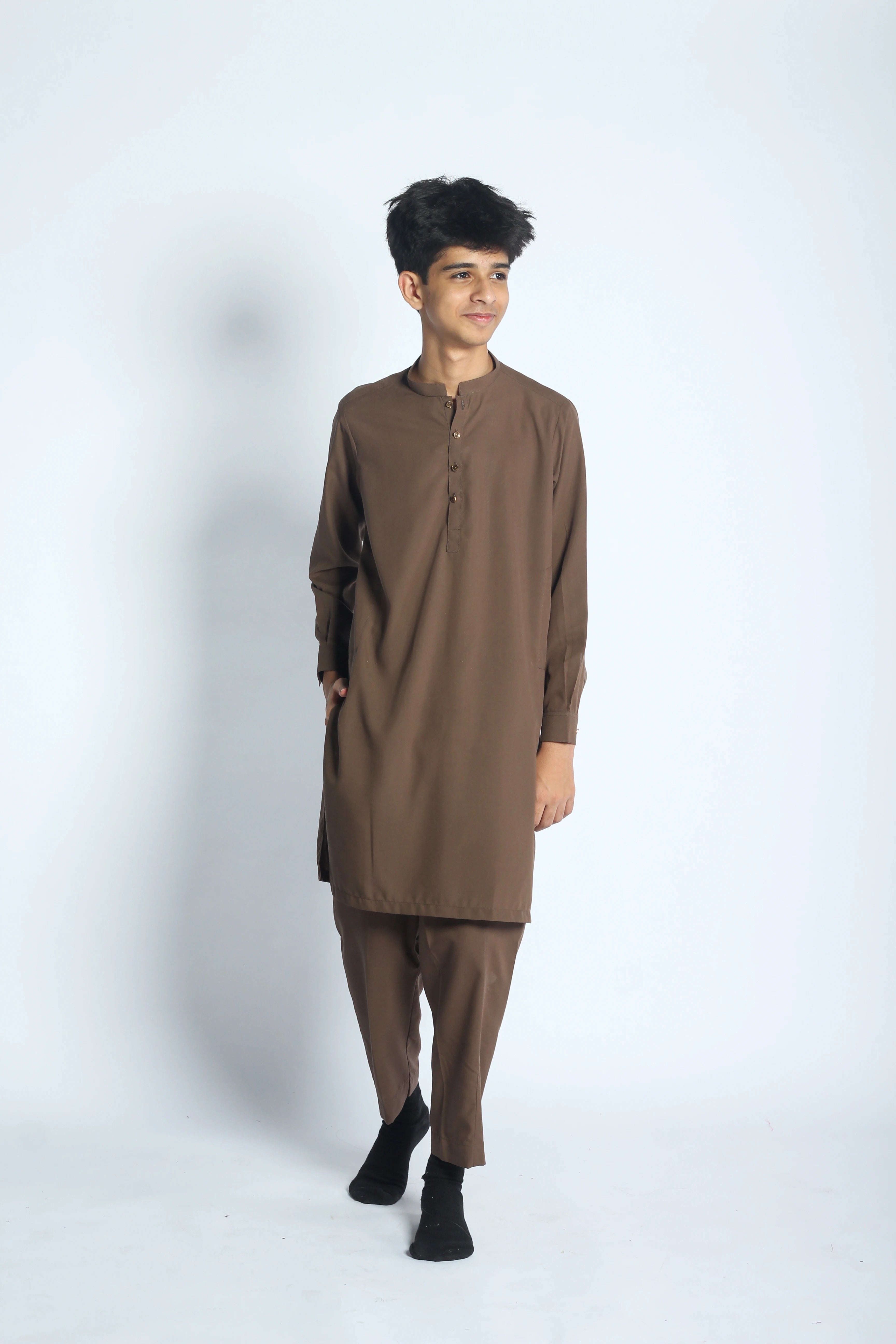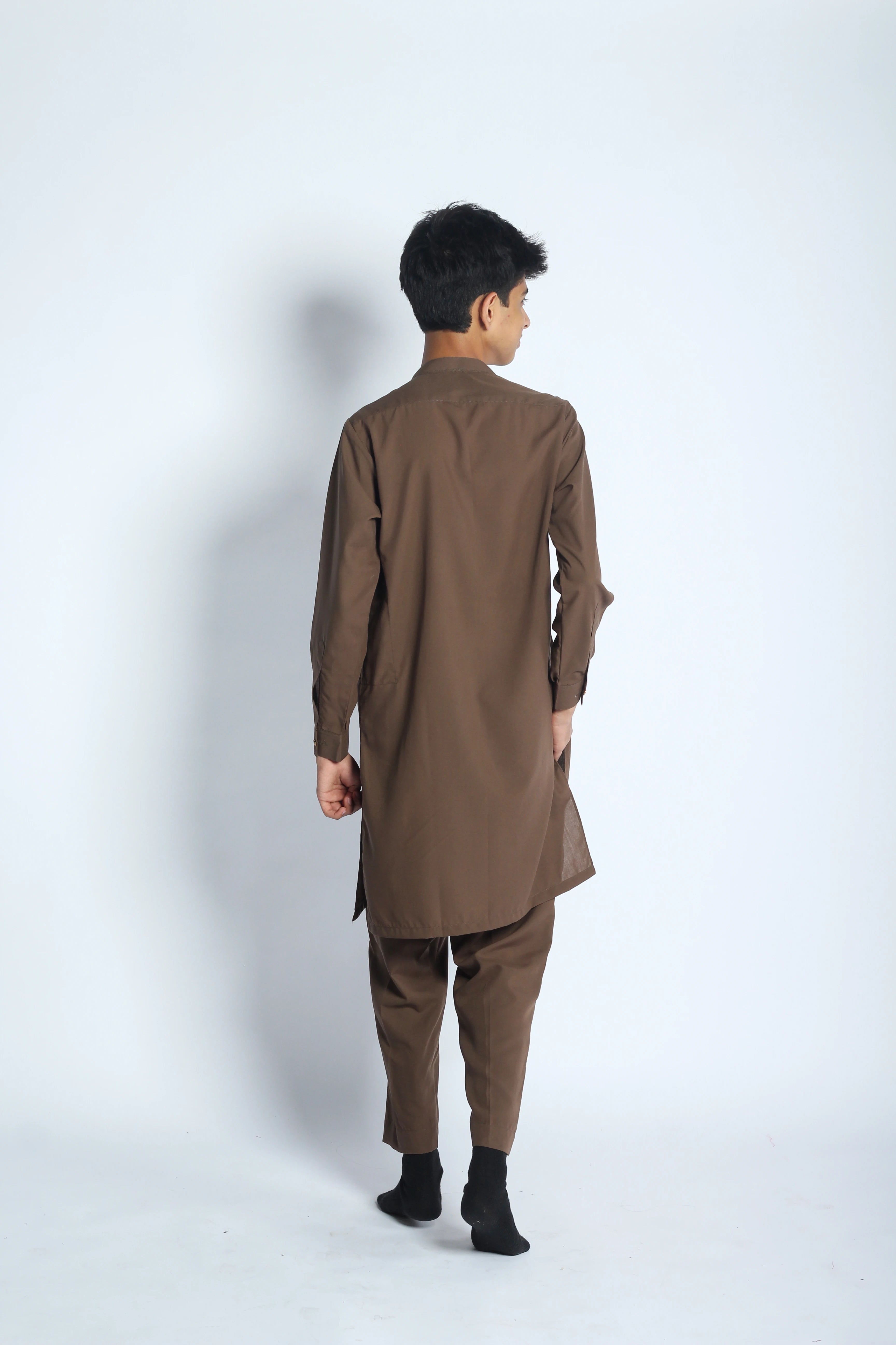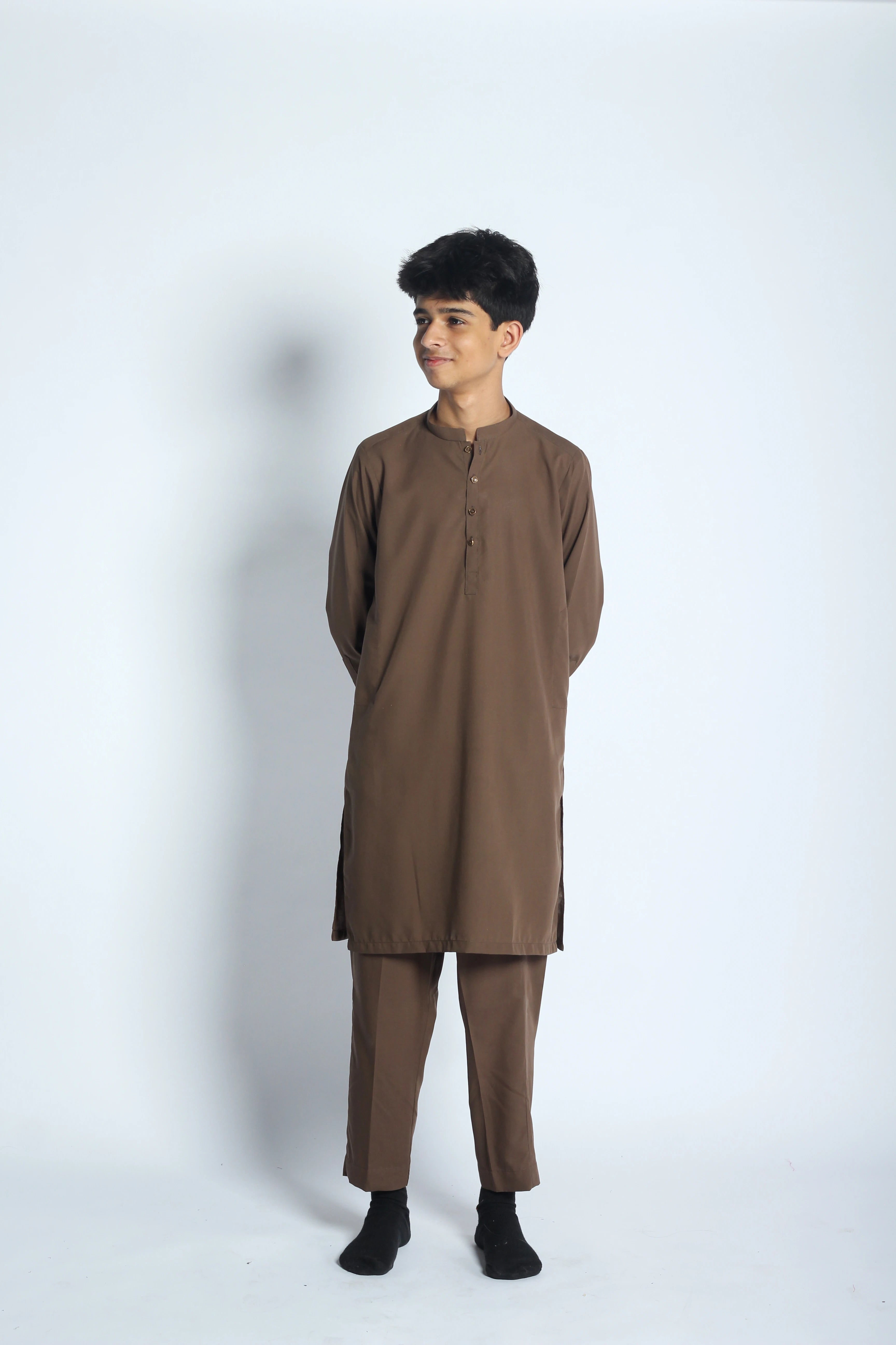 Upgrade your wardrobe with our wash and wear cedar color kurta trouser set, designed for the modern individual who values both style and convenience. This ensemble features a beautifully tailored kurta and matching trousers, crafted from premium wash and wear fabric for easy maintenance and lasting quality. Perfect for various occasions, this kurta trouser set ensures you look polished and feel comfortable all day long.