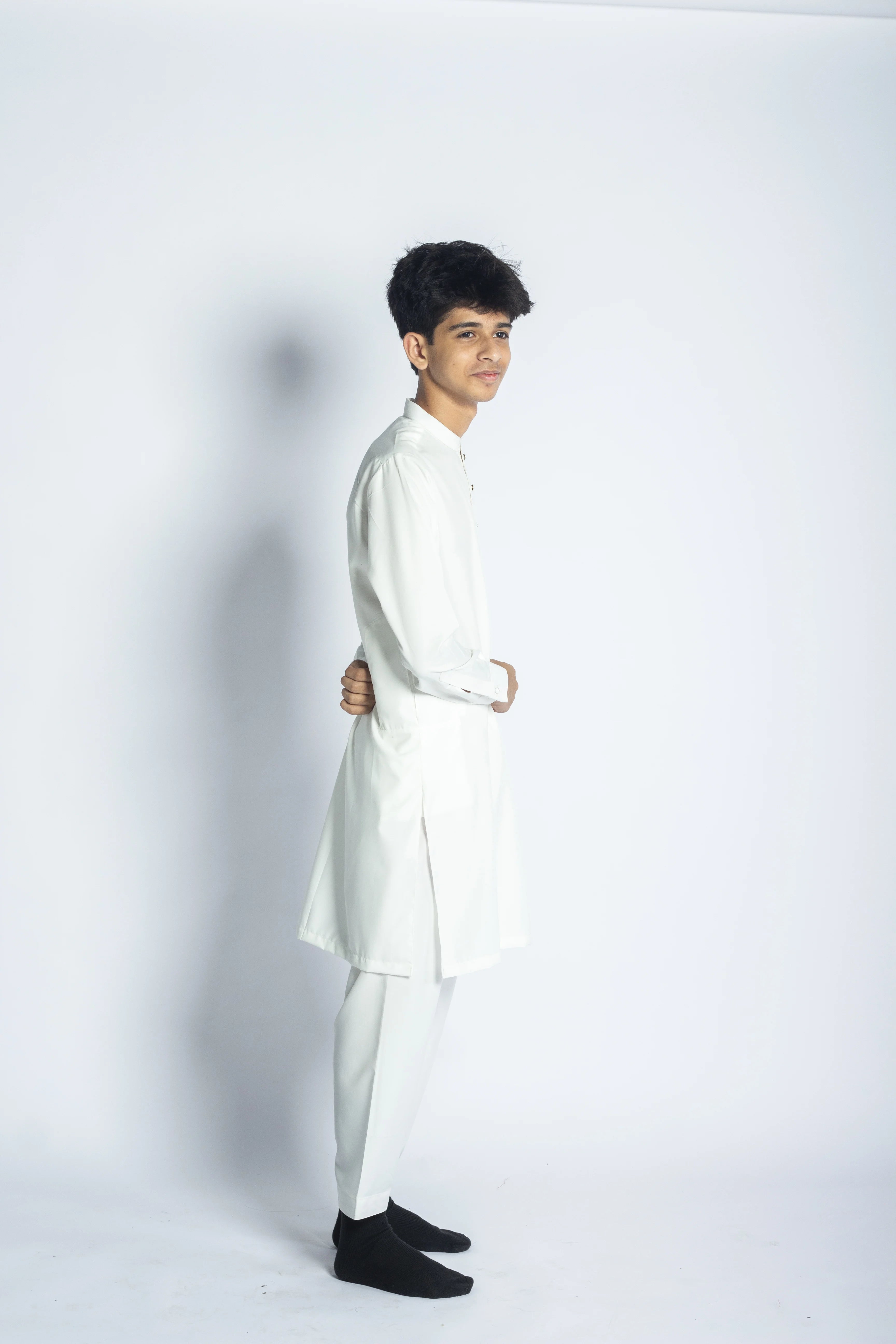 • Fit: Tailored fit for both the kurta and trousers, providing a sleek and polished appearance.