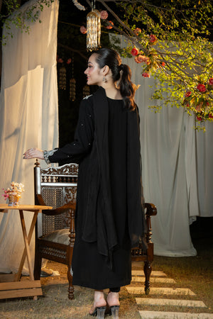 Dupatta: Pure Chiffon dupatta in matching jet black.