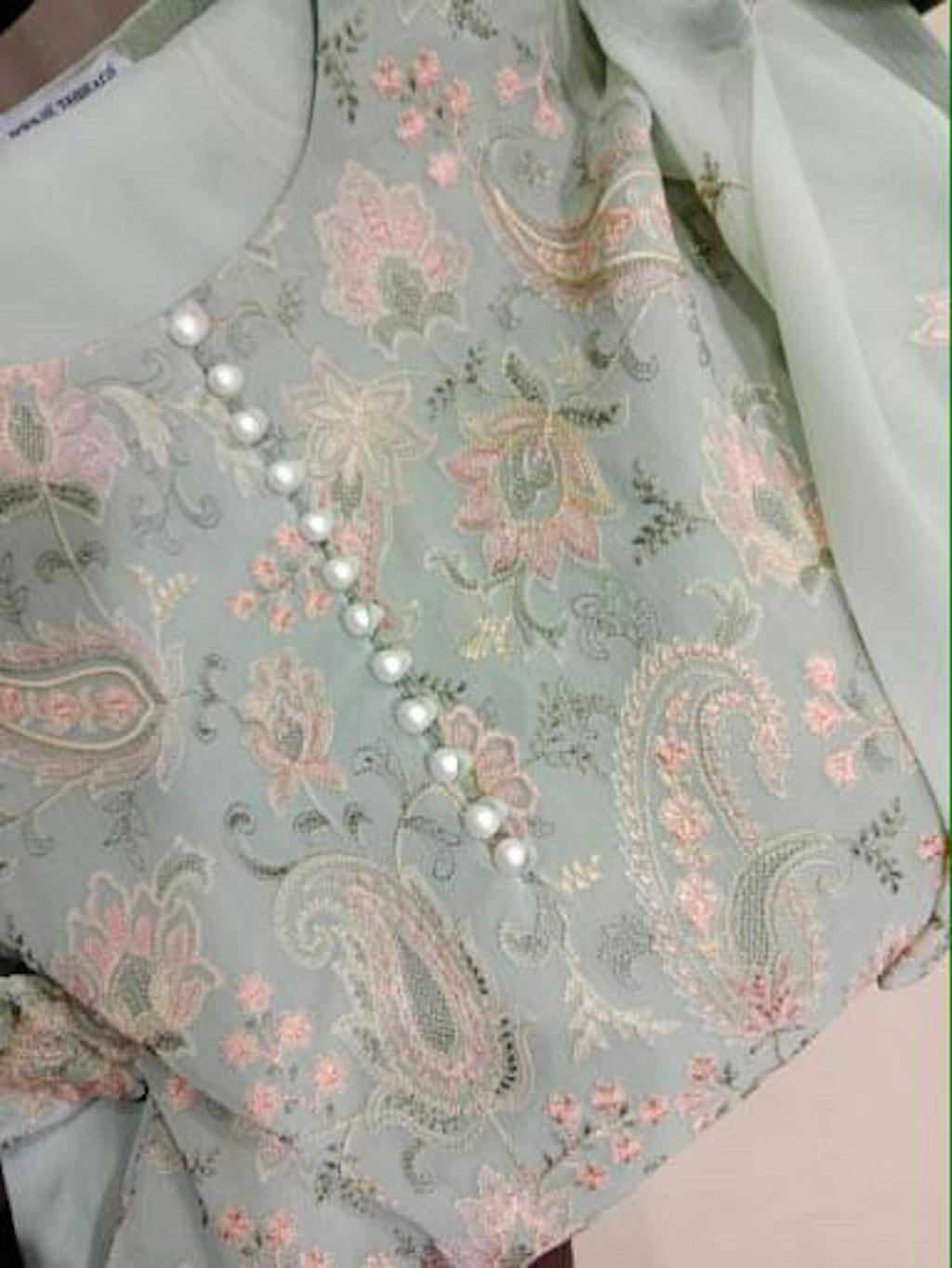 Dupatta: Sage Green Chiffon with Intricate Pink Embroidered Borders